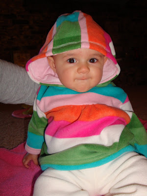 My boss gave Andréa an adorable Halloween bag full of toys, light-up rubber duckies and some clothes. She is so good to us! My sister took Andréa to the pumpkin patch and gave her a little pumpkin, which she loves to chew on. Andréa has been really fussy lately because she is cutting some teeth. She has had a slight temperature all weekend and isn't getting much sleep. I hate when she doesn't feel good because there is nothing I can do to make it better! I have tried everything! I hope she starts to feel better real soon! Or maybe she just misses her grandparents because they left her this week for Boston and Las Vegas?!?!